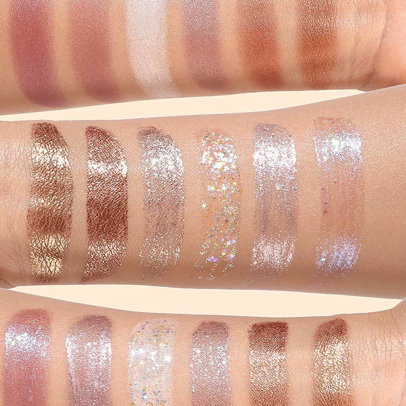 Ne uporabljajte ga samo na vekah – posvetlite lica, poudarite nosni koren ali dodajte subtilen sijaj obrazu. Tako kremna kot tekoča formula se brezhibno zlijeta s kožo in vam omogočata enostavno preoblikovanje videza.
