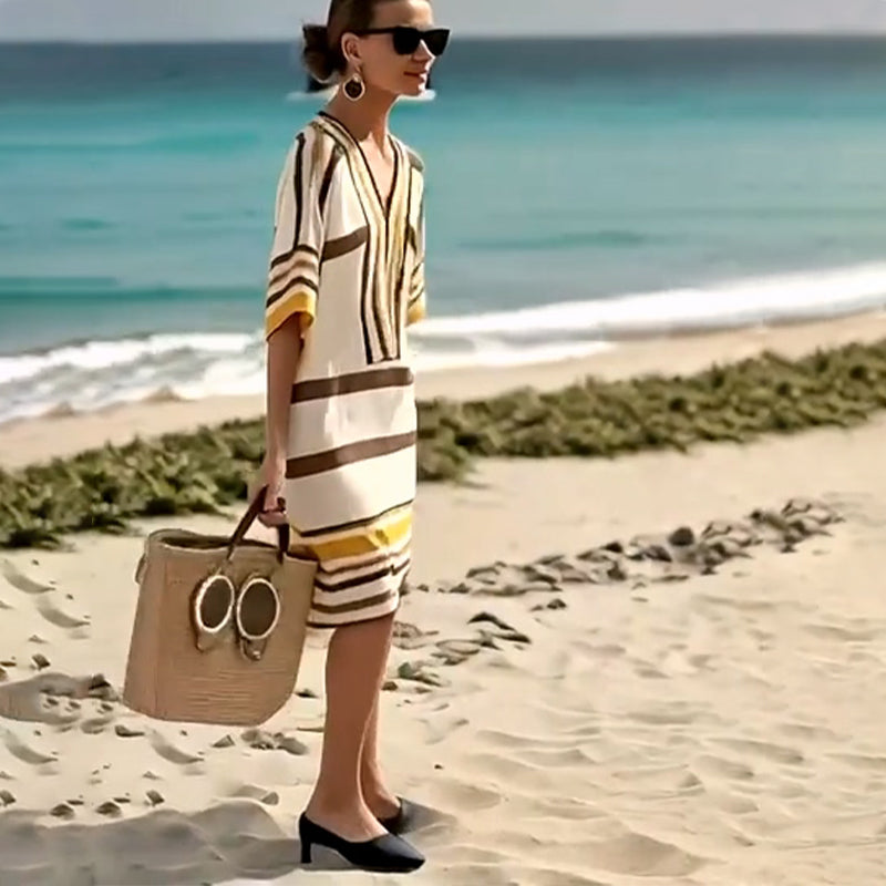【S-3XL】👗Ženska črtasta obleka z V-izrezom-SI