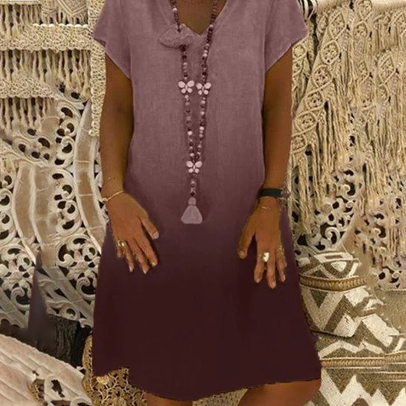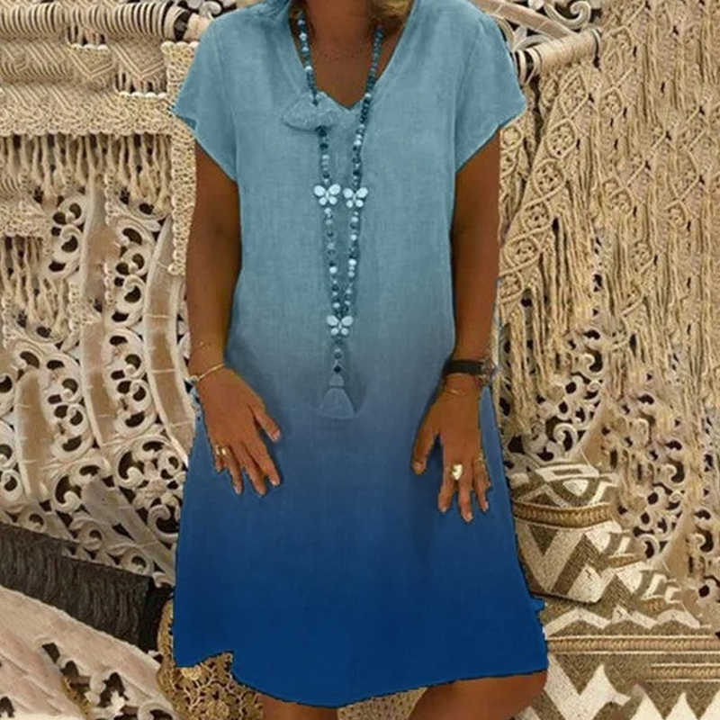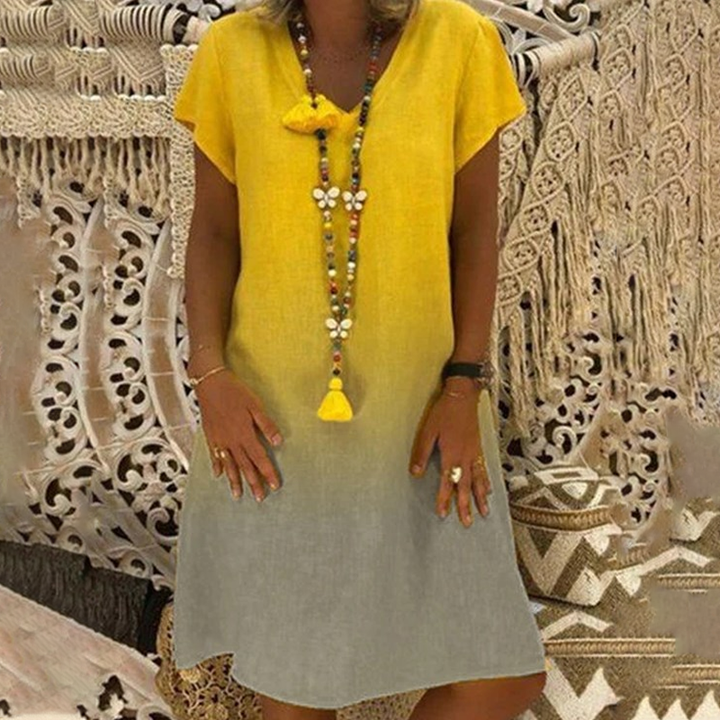 💃 Laisvalaikio suknelė su V formos iškirpte ir trumpomis rankovėmis gradiento stiliaus-LT