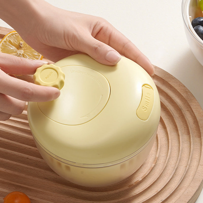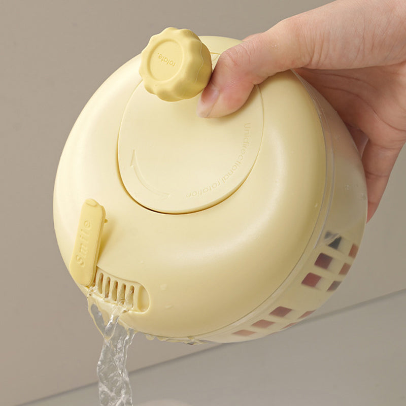 Rankinis sukimosi mechanizmas leidžia sklandžiai ir lengvai suktis 360°. Didelis sukimosi greitis greitai ir kruopščiai pašalina vandenį, todėl vaisiai ir daržovės ilgiau išlieka švieži ir sausi.