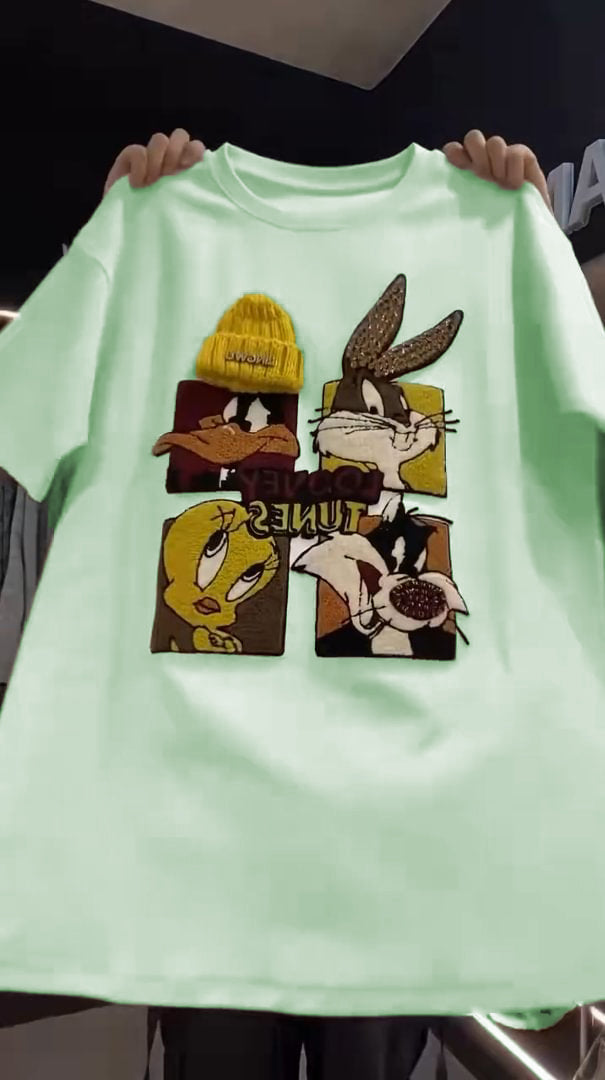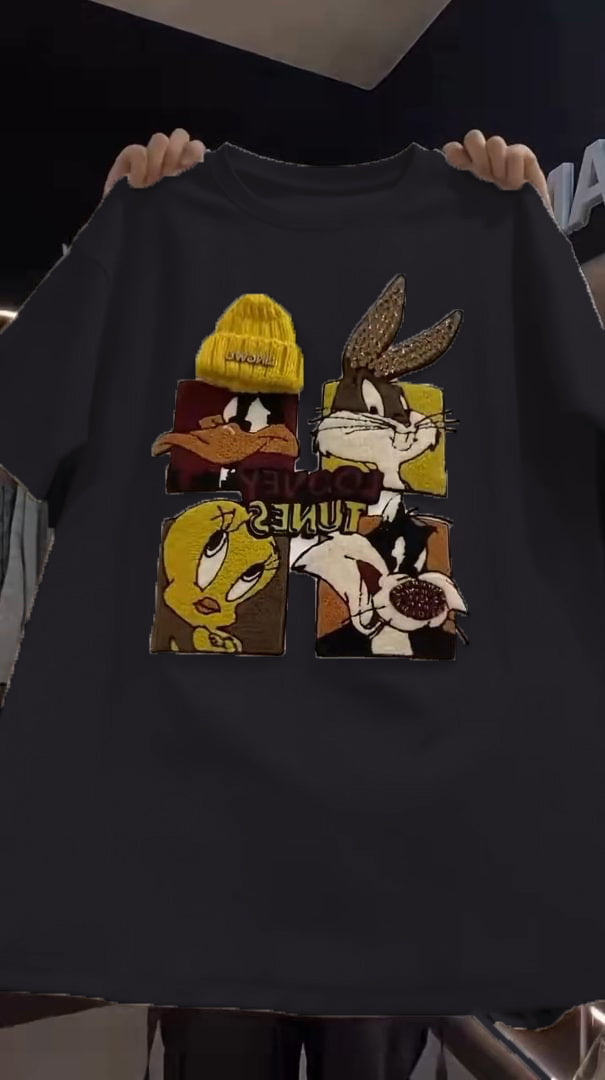 🍭Čudljiv pulover z risanimi bleščicami-SI