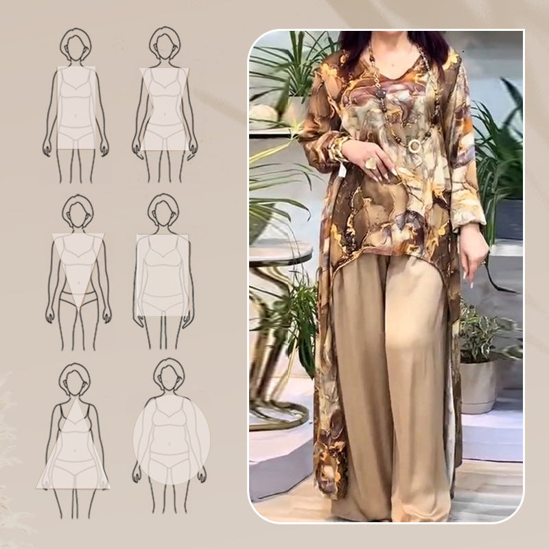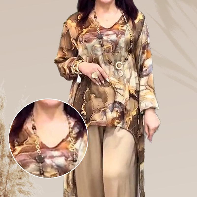 ❤️Γυναικείο σετ δύο τεμαχίων με μοντέρνο τυπωμένο τοπ και παντελόνι-GR