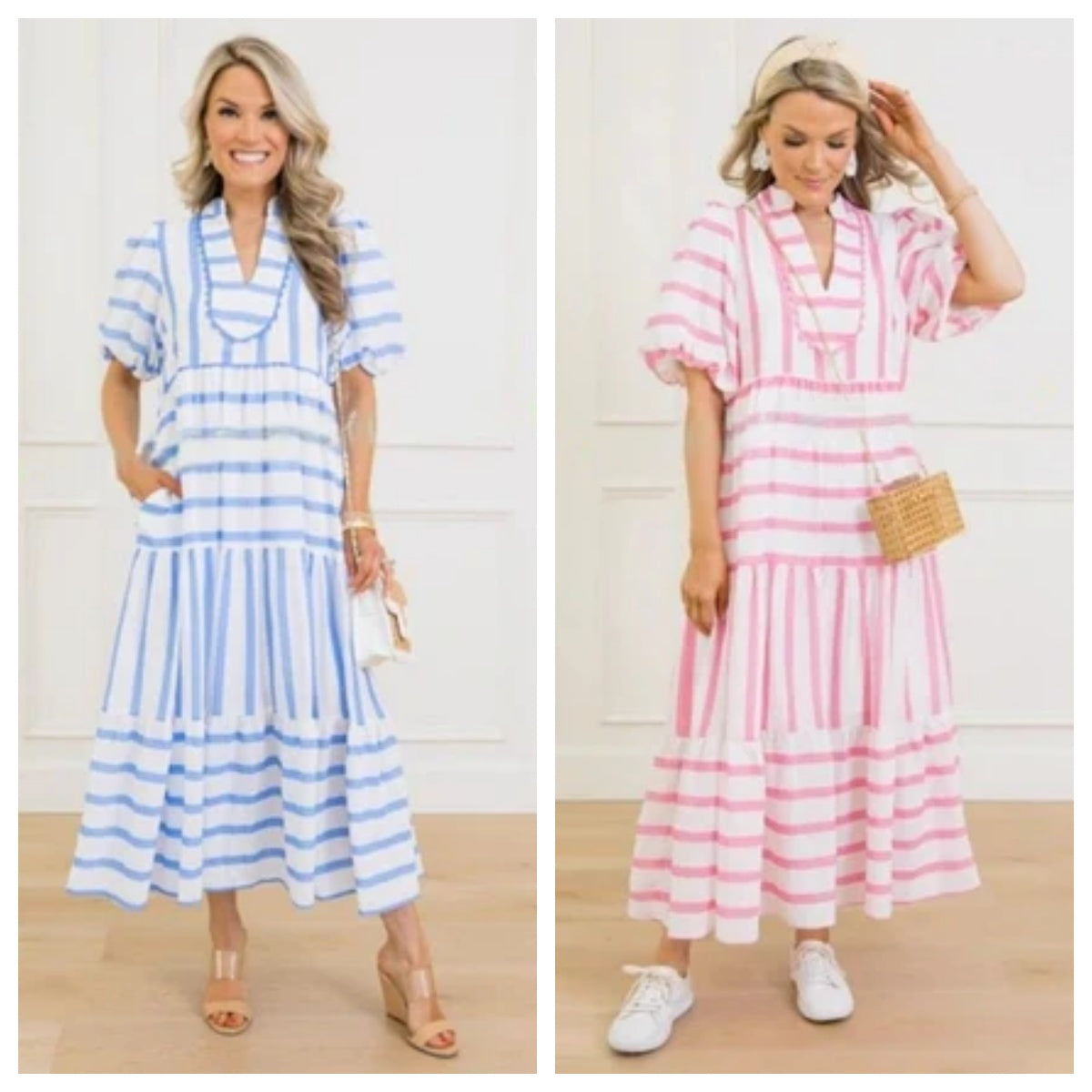 🌸Moteriška vasarinė dryžuota, laisva, kasdieniška, trumpomis rankovėmis suknelė-LT