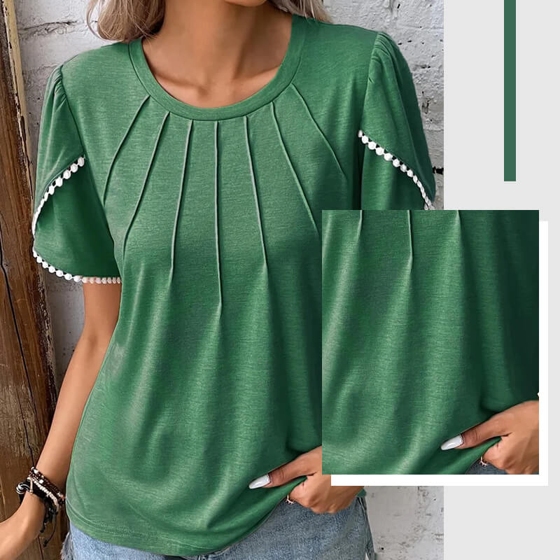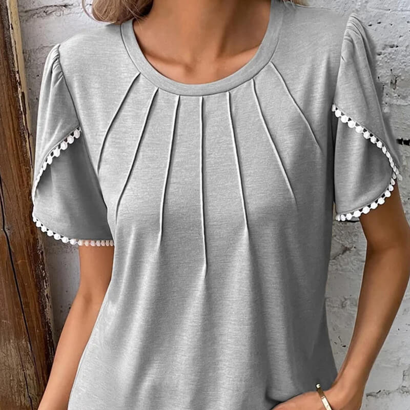 🔥Nauji moteriški laisvalaikio stiliaus vienspalviai nėriniuoti marškinėliai apvaliu kaklu-LT