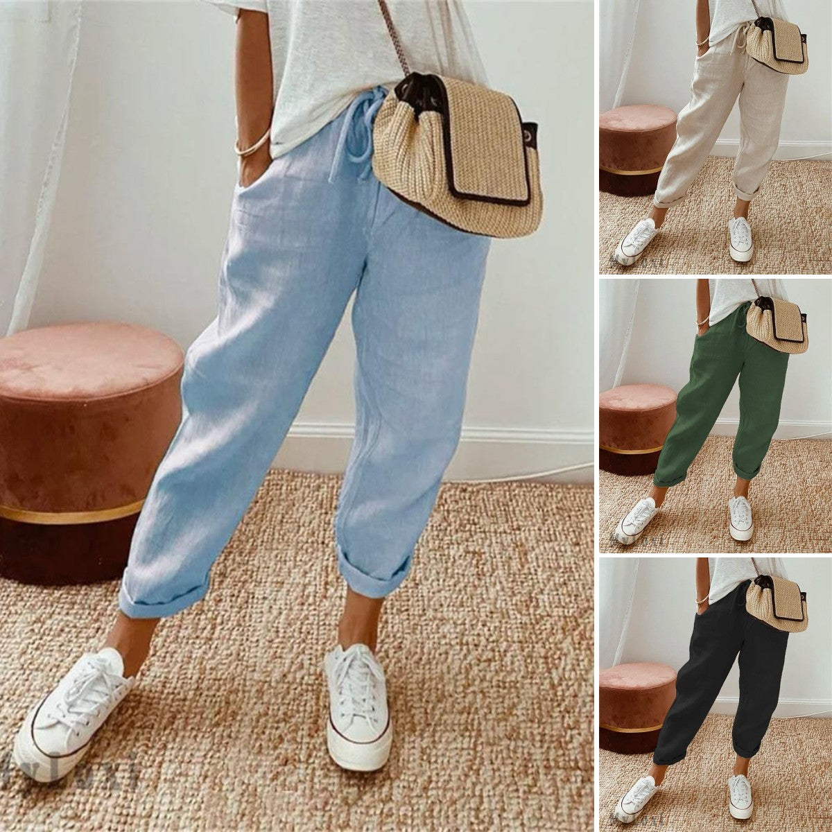 💕Ανεπίσημο γυναικείο παντελόνι από βαμβάκι και λινό-GR
