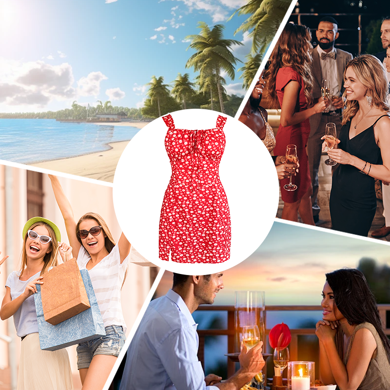 DIHAJOČA CELODNEVNA OBLAČILA - Ultra mehak poliester, odporen proti gubam, vas ohranja hladne v poletni vročini. Tkanina, ki odvaja vlago, se ne oprijema, kvadraten izrez in široke naramnice pa zagotavljajo lahkotno oporo. Ni potrebno prilagajanje - plešite, hodite ali jejte brez skrbi. Pralno v pralnem stroju za enostavno vzdrževanje.