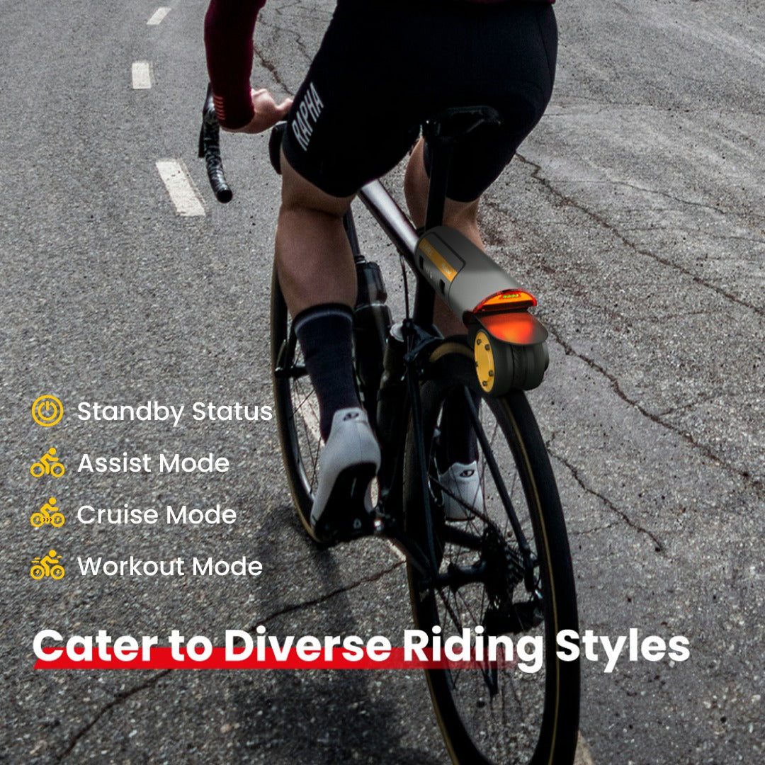 Edinstvenost tega sistema je, kako hitro spremeni vašo izkušnjo vožnje. Začetna namestitev traja le 3 minute, ko pa je vse nameščeno, namestitev ali odstranitev motorja traja le 10 sekund. Ni potrebno posebno orodje, zapleteno ožičenje ali trajne modifikacije okvirja. Kot da bi imeli odstranljivo supermoč, ki je vedno na voljo.