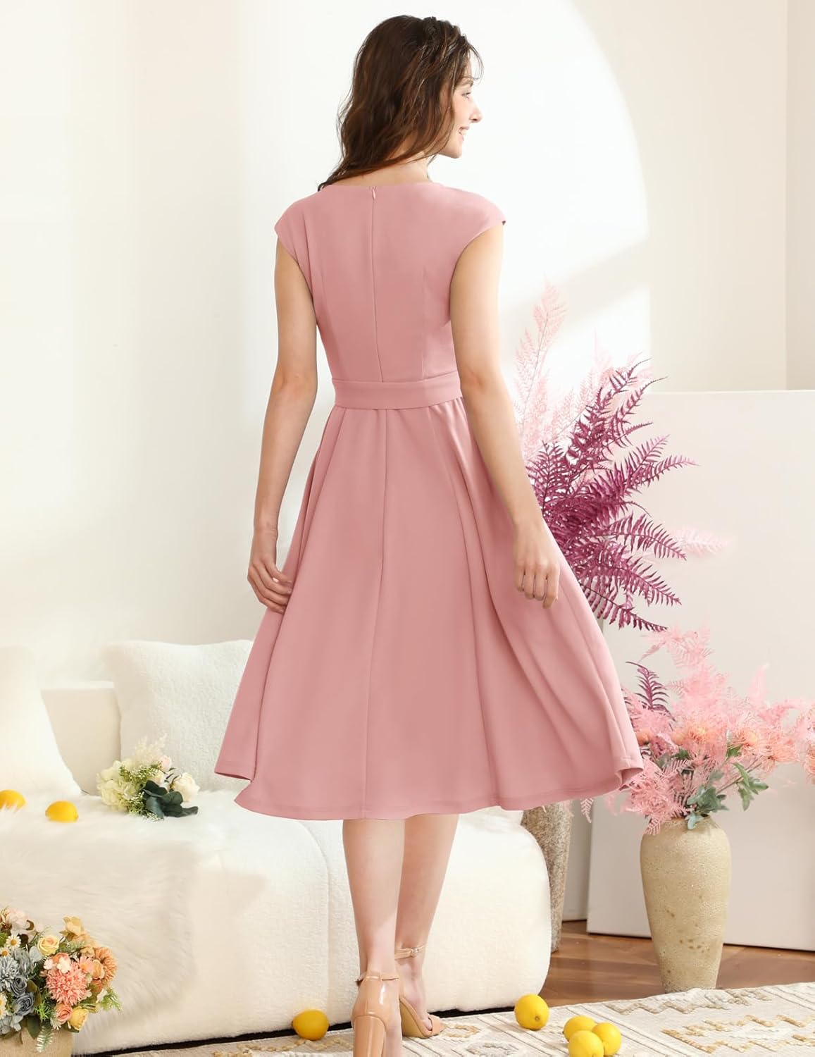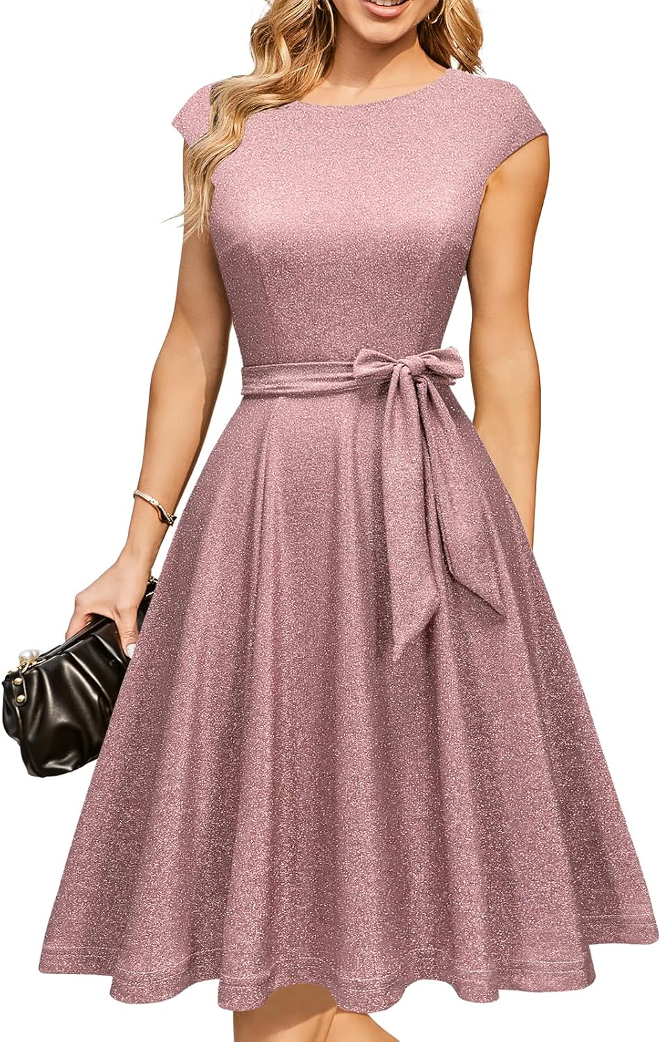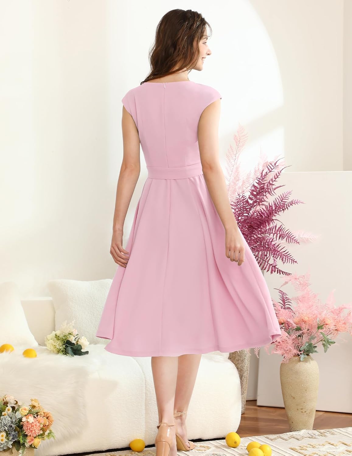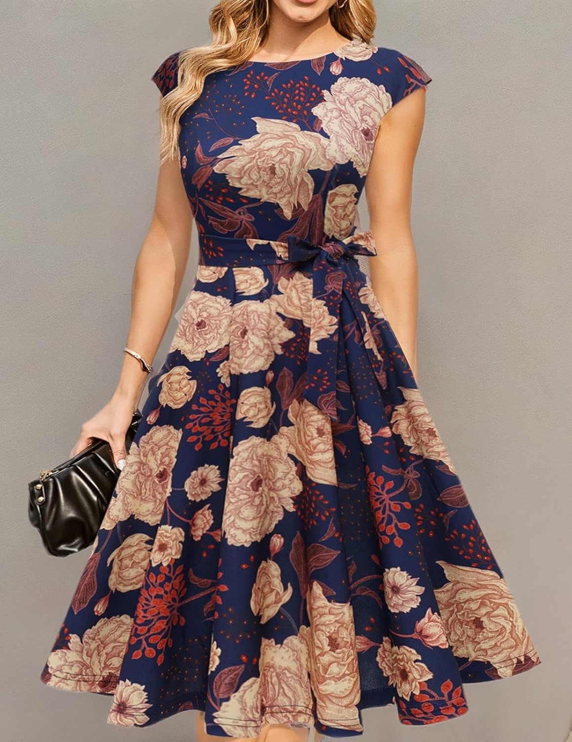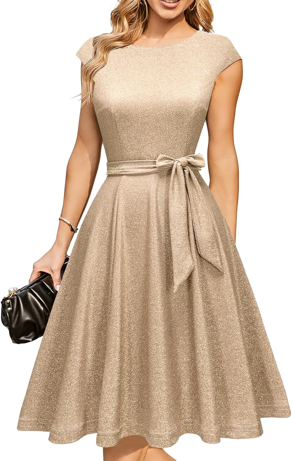 Ženske obleke pomlad/poletje 2025: Ta sproščena obleka za poročne goste je odlična tako za elegantne priložnosti kot za vsakodnevno nošenje! Rokavi s kratkimi rokavi poudarijo vaša ramena! Ta raztegljiva in lepa obleka v zahodnjaškem slogu je udobna in oprijeta v pasu, ne da bi bila pretesna.