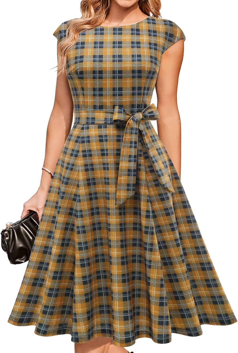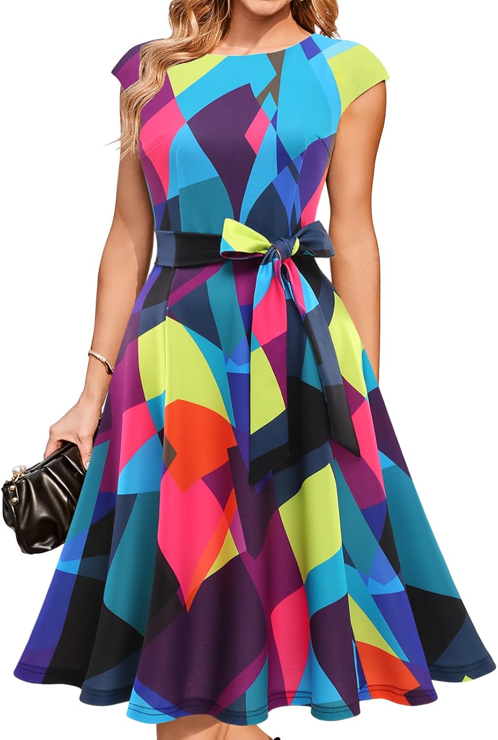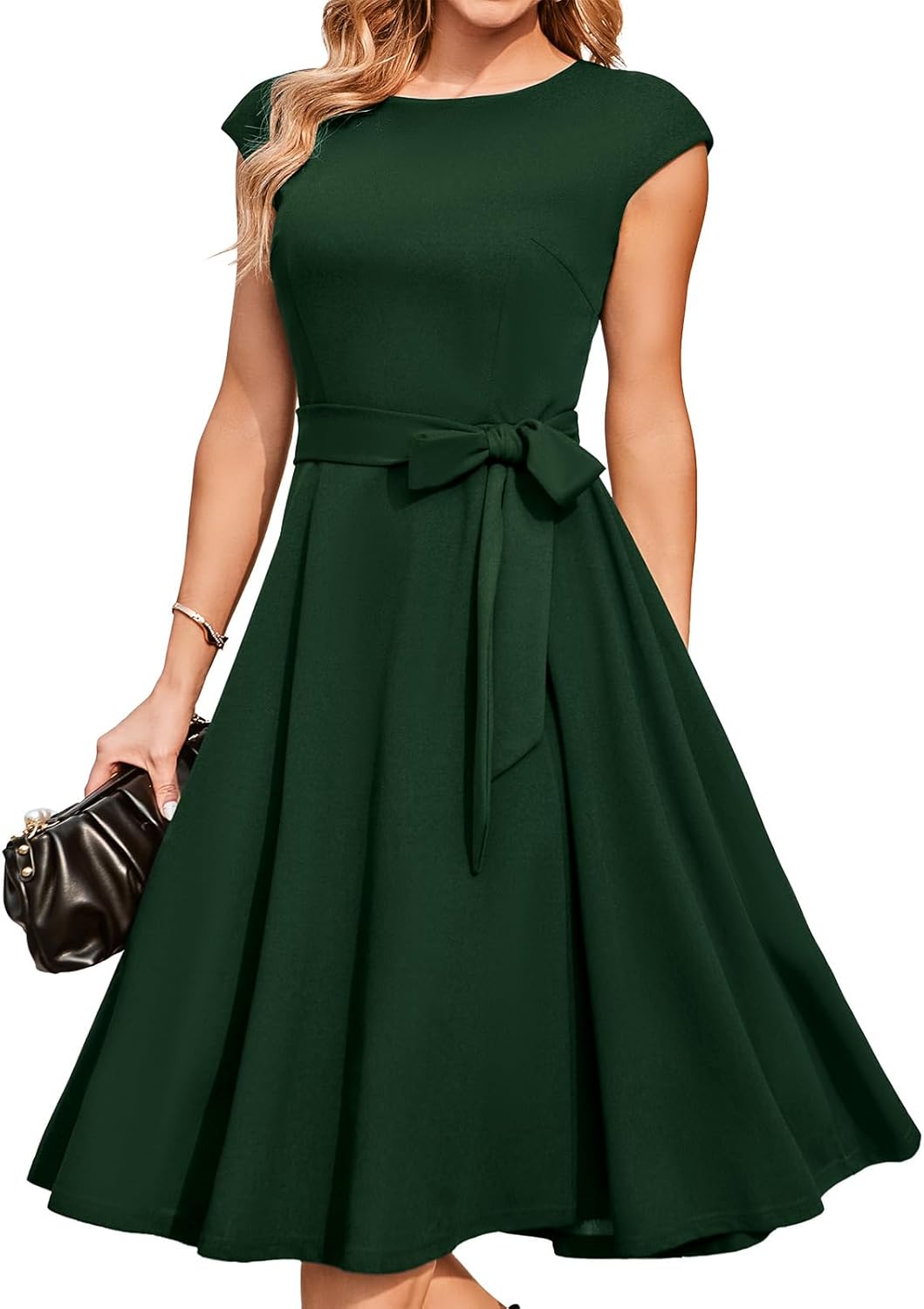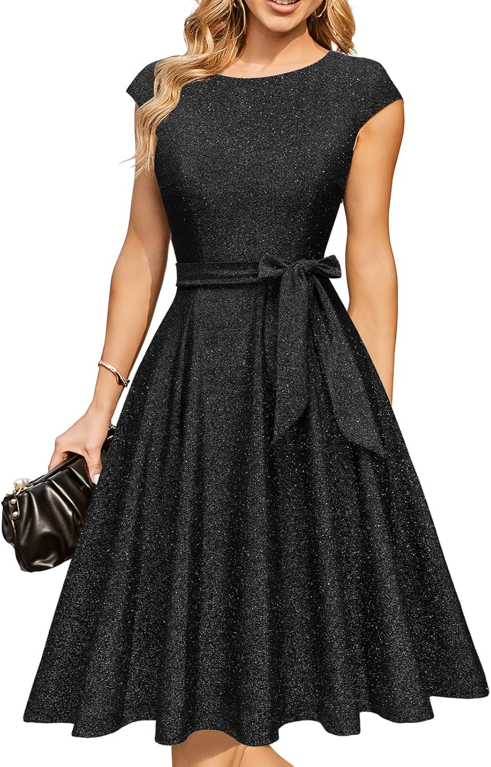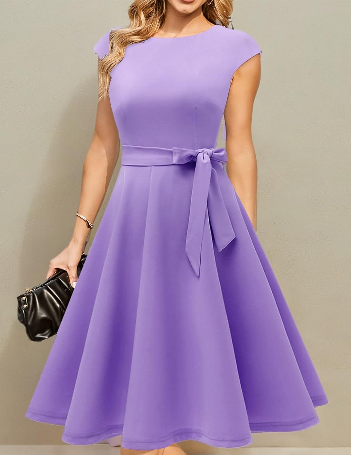 Ženske obleke pomlad/poletje 2025: Ta sproščena obleka za poročne goste je odlična tako za elegantne priložnosti kot za vsakodnevno nošenje! Rokavi s kratkimi rokavi poudarijo vaša ramena! Ta raztegljiva in lepa obleka v zahodnjaškem slogu je udobna in oprijeta v pasu, ne da bi bila pretesna.