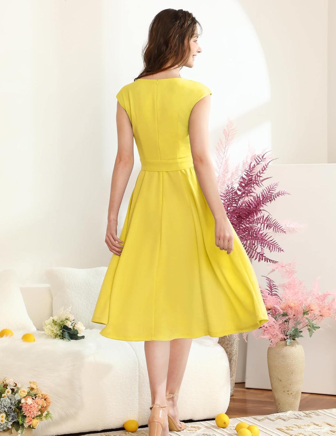 Ženske svečane obleke: Koktajl obleke so odlične za vsakodnevno delo in vam pomagajo uskladiti zabavo ob koncu tedna s potrebami po delovnih oblačilih. Srednje dolge, svetlo rumene silhuete in snemljiv okrasni pas – vsi ti slogi bodo zadovoljili vaše polformalne potrebe.