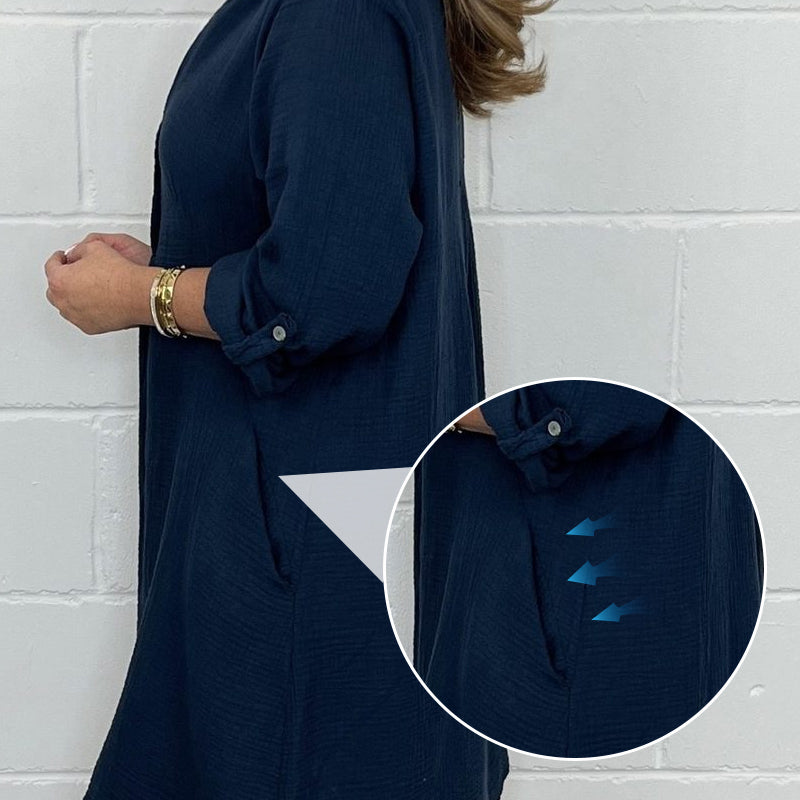 Praktiškos kišenės – su dviem erdviomis kišenėmis, šis drabužis yra praktiškas ir praktiškas, leidžiantis neštis mažesnius daiktus be rankinės.