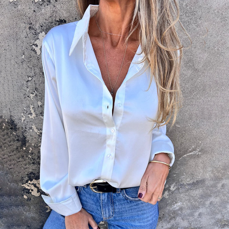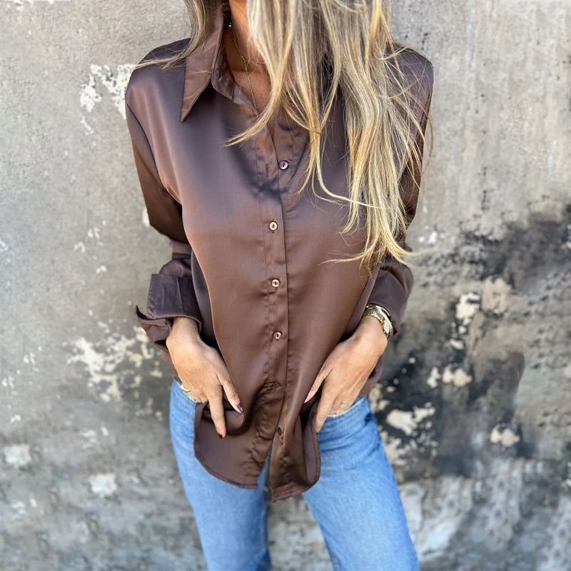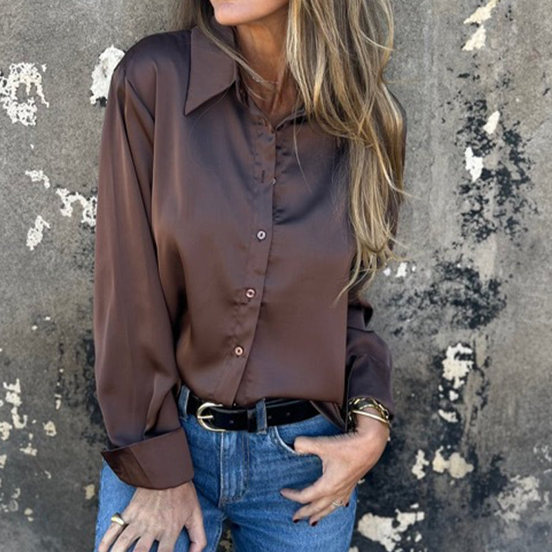 🎊 Vasaros naujienos🎊 Elegantiški atlasiniai ilgomis rankovėmis marškiniai-LT