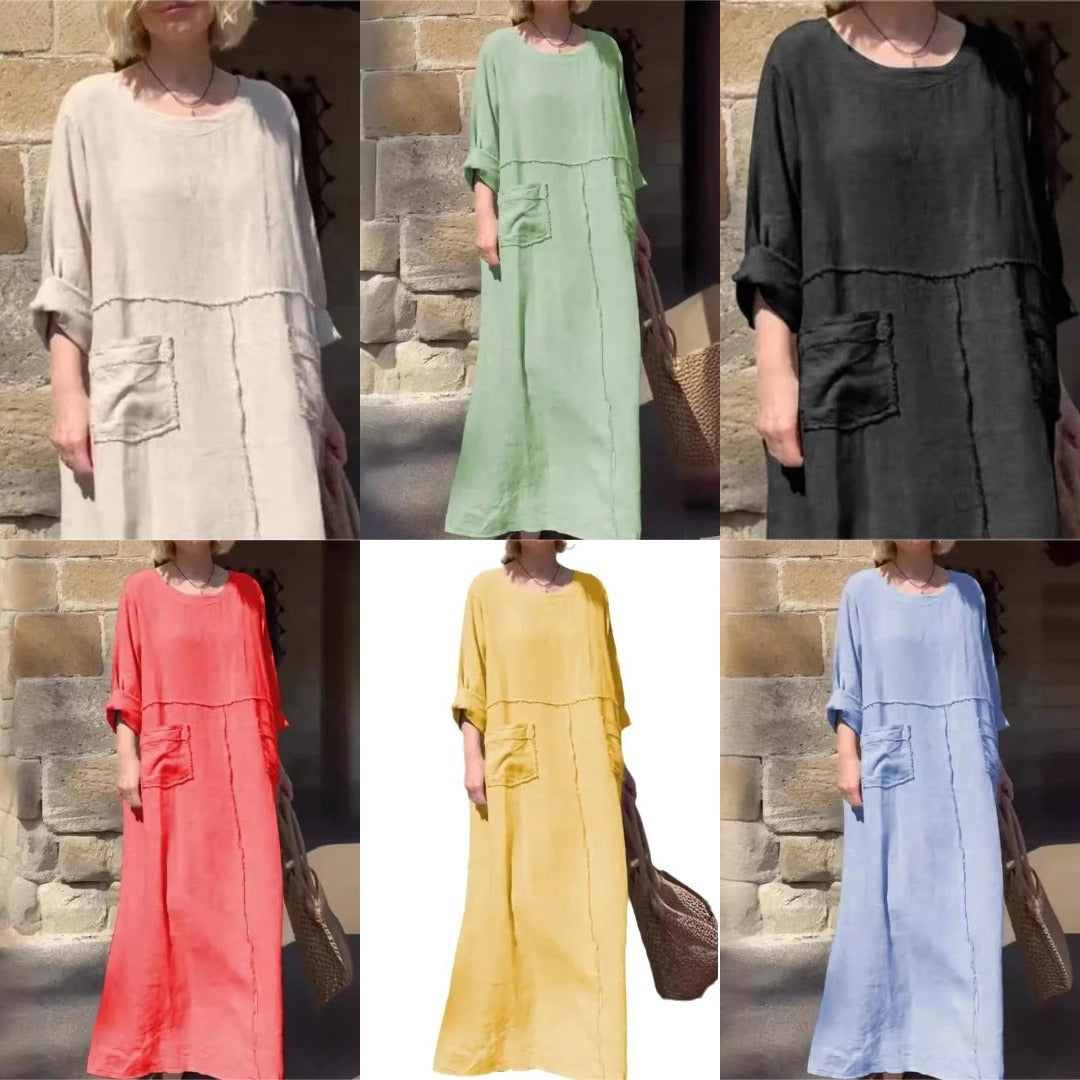 🌿Vienspalvė suknelė su apvalia iškirpte, kvėpuojanti🌪️-LT