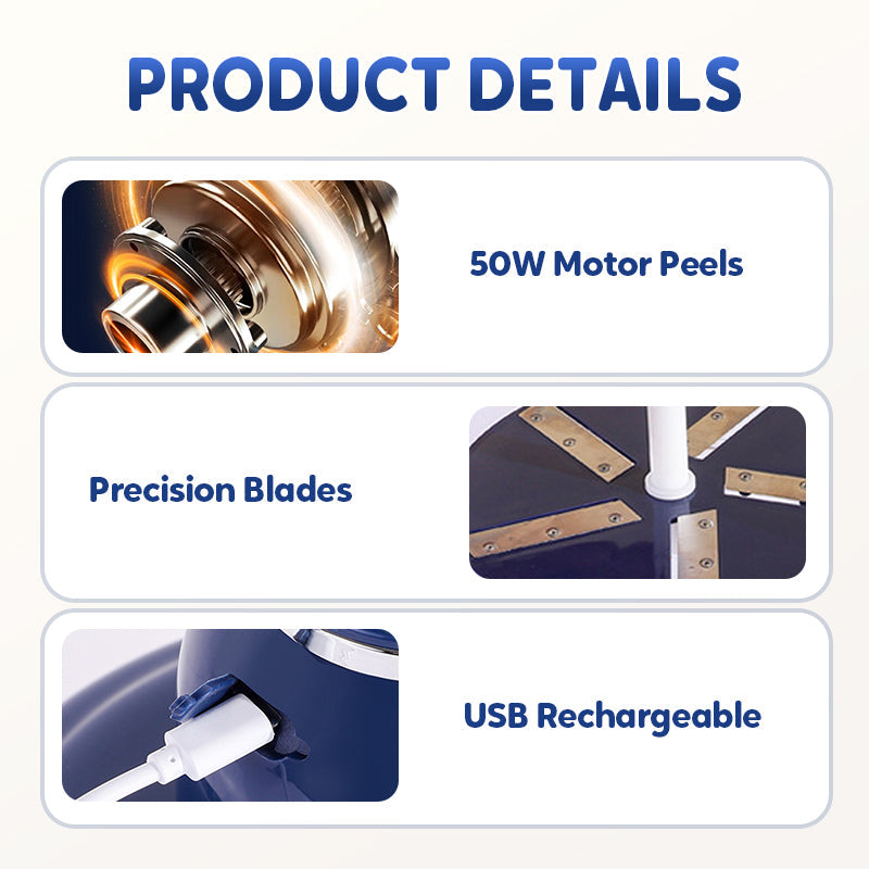 Enostavno lupljenje, brez napora in težav – samo pritisnite gumb in naprava opravi vse delo – v 25 sekundah boste imeli popolnoma olupljeno sadje. 50 W motor zagotavlja visoko zmogljivost lupljenja, zahvaljujoč inteligentni tehnologiji hlajenja pa naprava deluje tiho in se ne pregreva.