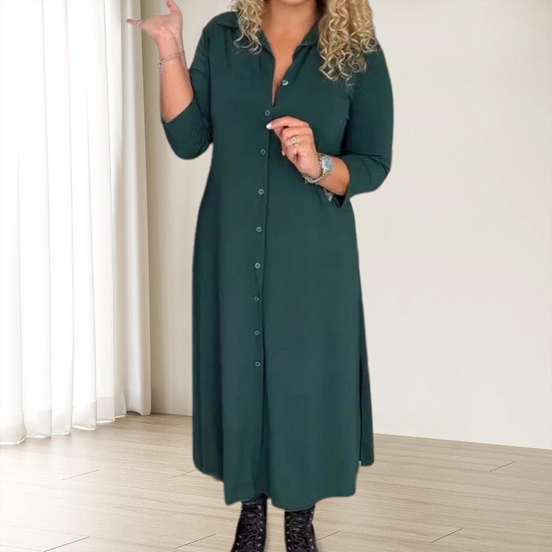 ΚΛΕΙΣΙΜΟ ΜΠΡΟΣΤΑ - Το φόρεμα έχει ένα βολικό κλείσιμο με κουμπιά μπροστά που σας επιτρέπει να προσαρμόσετε τη λαιμόκοψη στις προτιμήσεις σας. Αυτή η λειτουργική λεπτομέρεια όχι μόνο ενισχύει το στυλ του φορέματος, αλλά και διευκολύνει τη χρήση του.