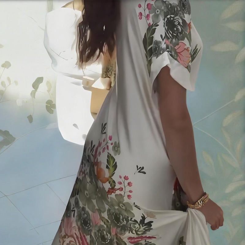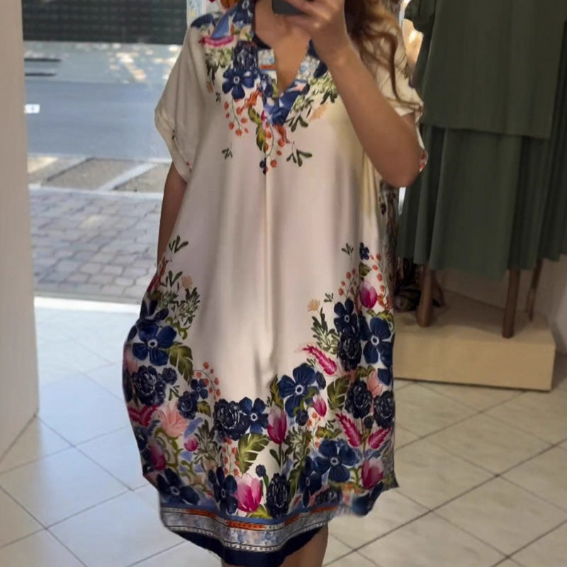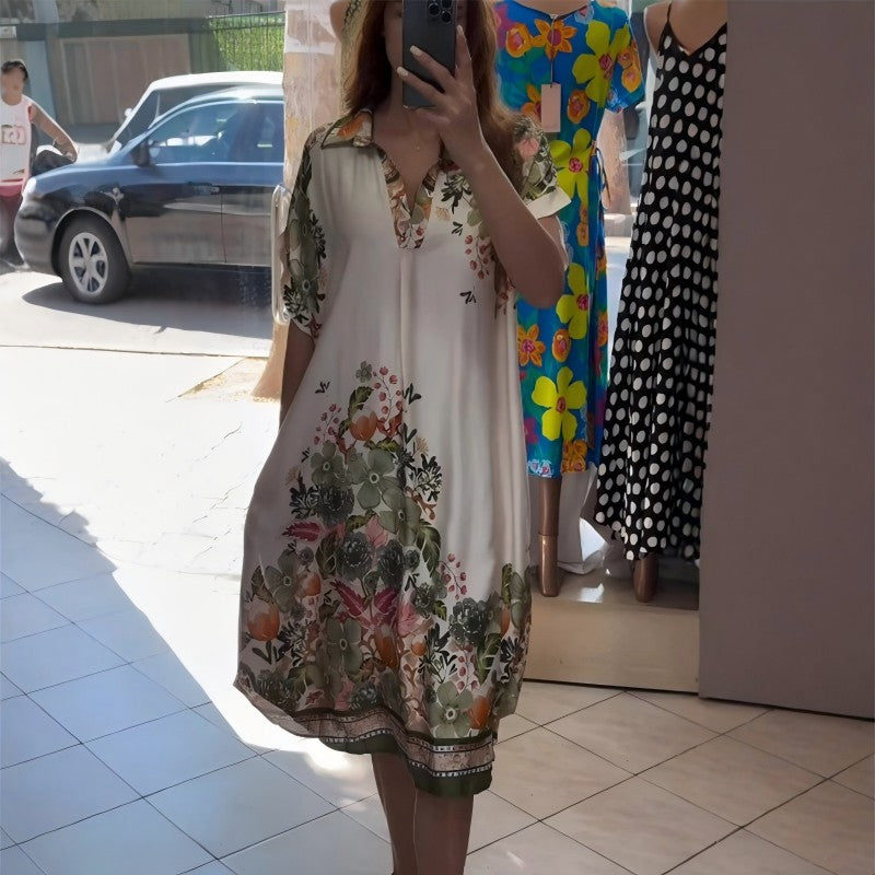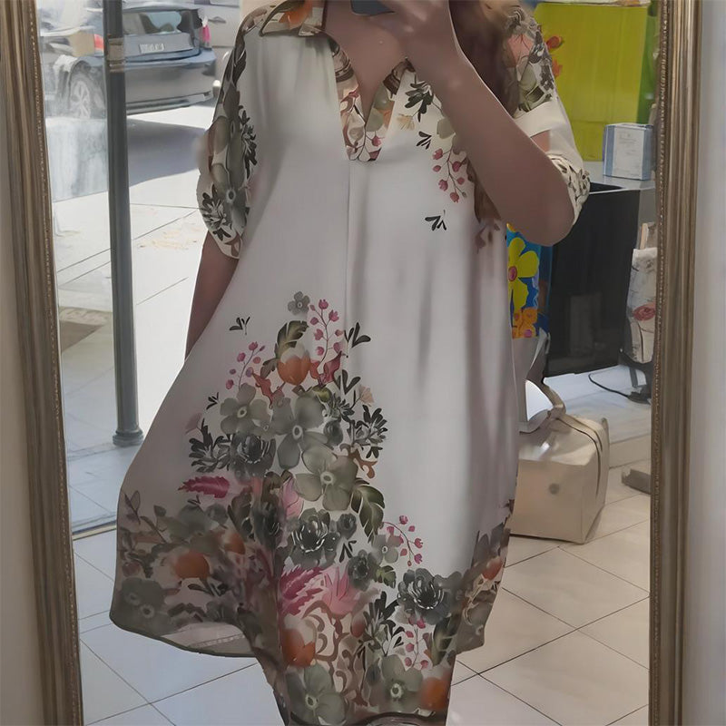 Laisva gėlėta suknelė su V formos iškirpte-LT