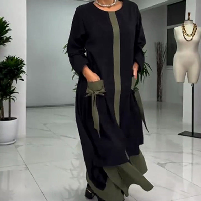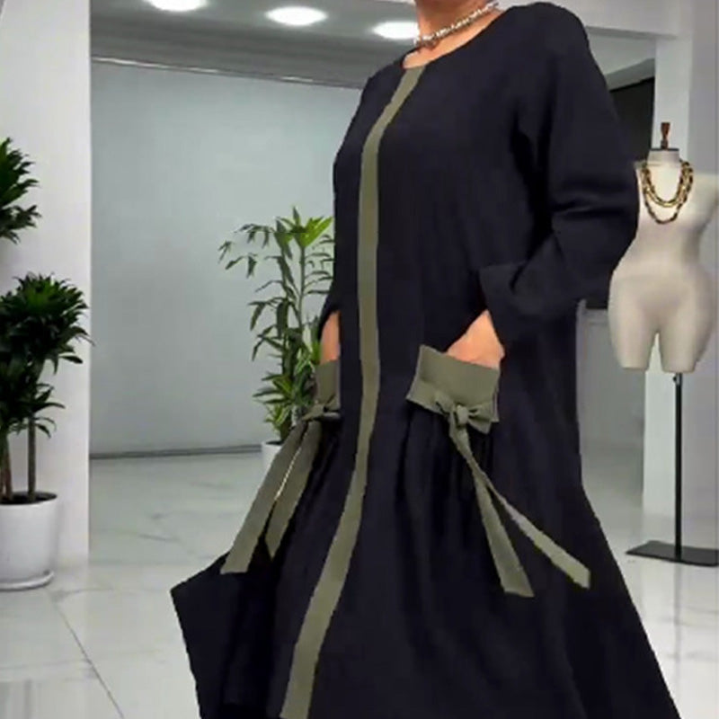 Γυναικείο κομψό loose color block φόρεμα-GR