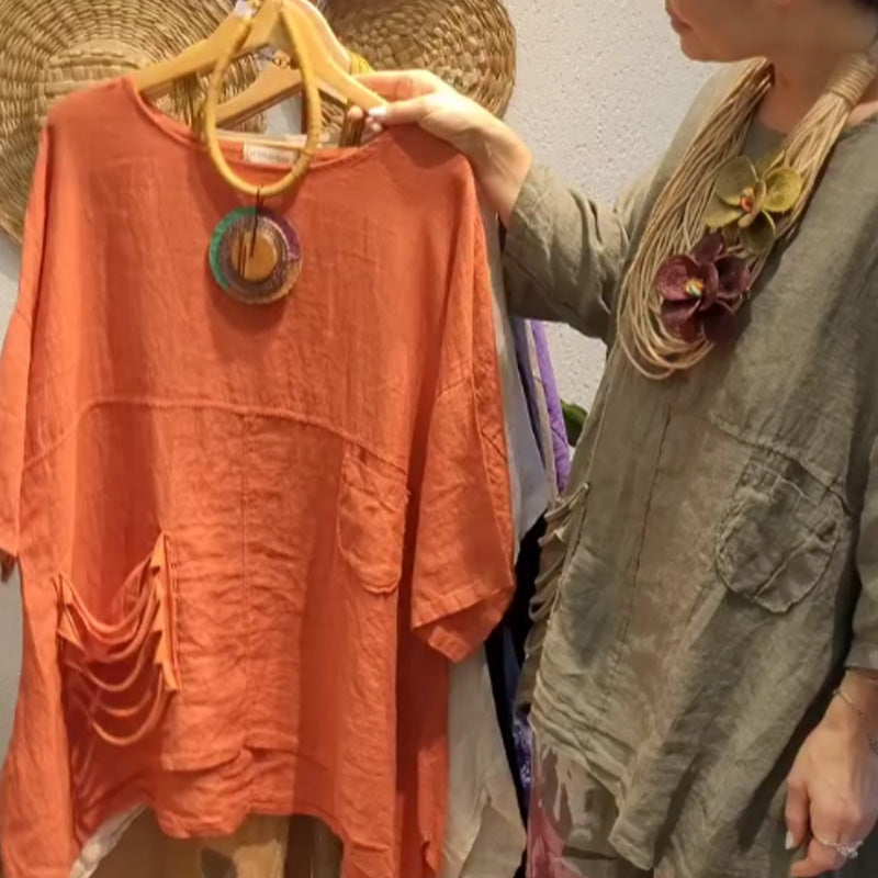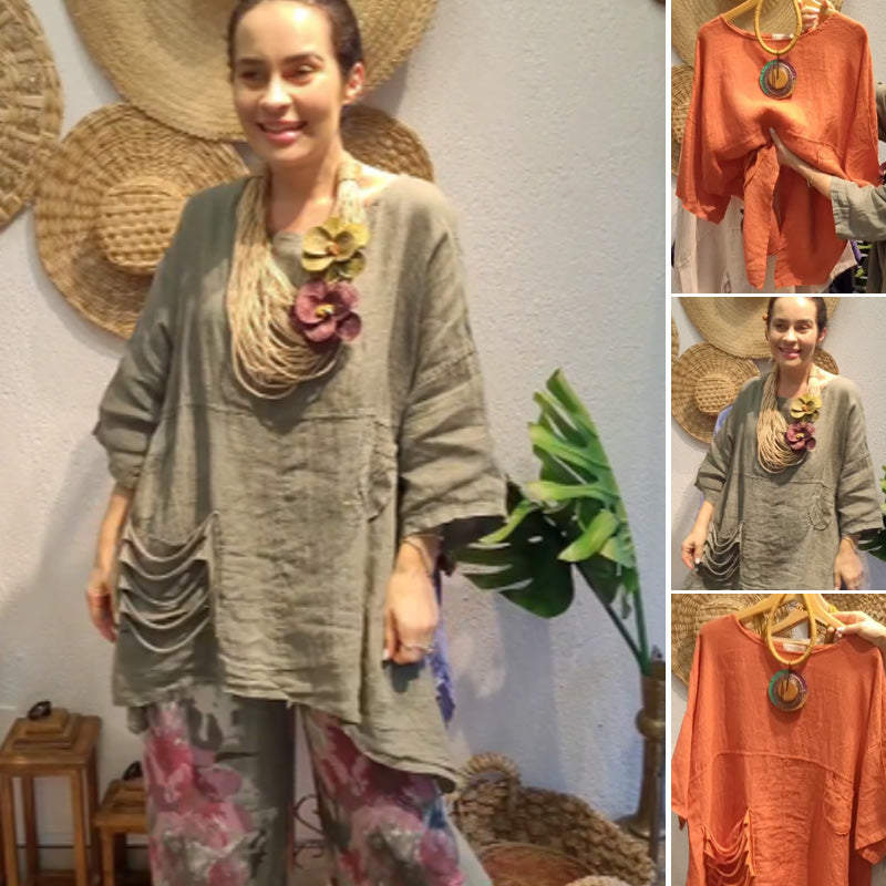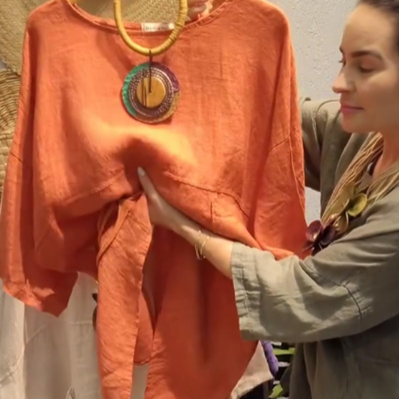 🔹 Pagaminta iš natūralaus lino mišinio, ši kvėpuojanti palaidinė idealiai tinka šiltoms dienoms – minkšta liesti, tačiau patvari.