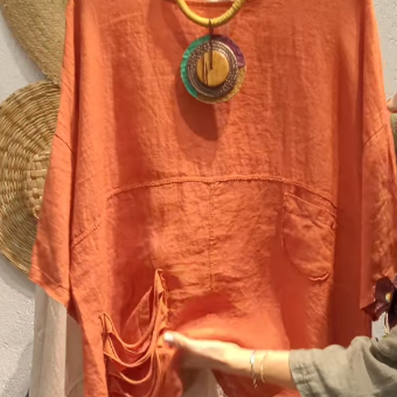 ✨Lininis viršus su šoninėmis kišenėmis moterims, laisvo kirpimo-LT