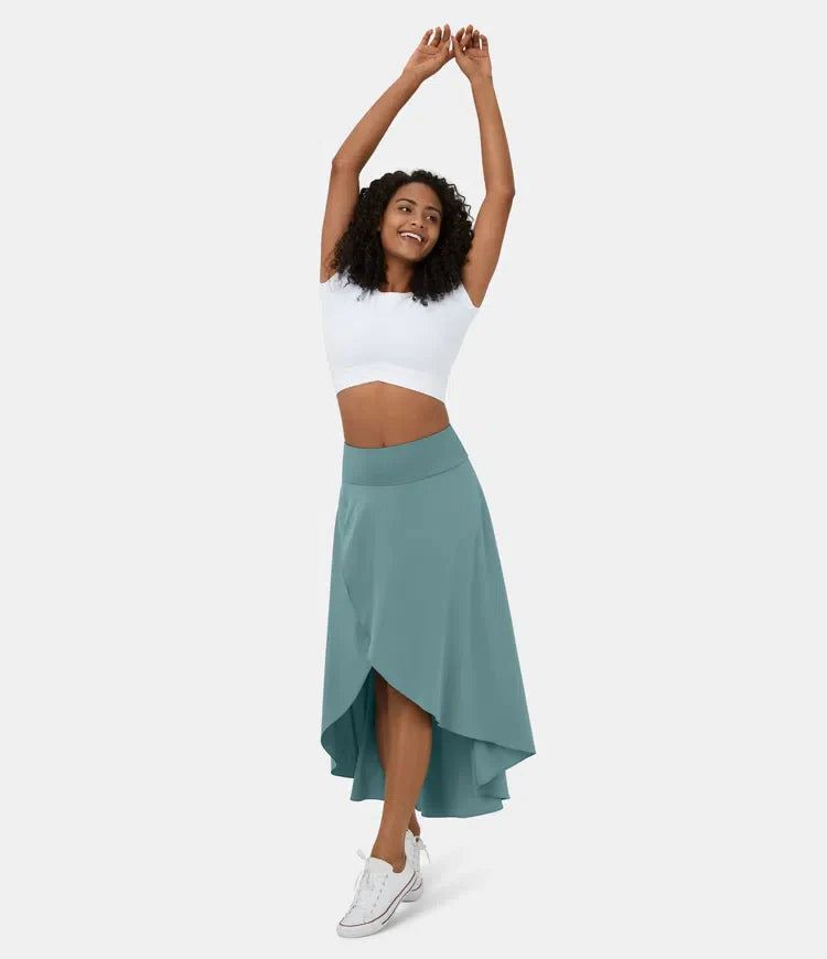 Φούστα 2 σε 1, Γρήγορο Στέγνωμα, Casual, Μίντι με Ψηλή Μέση και Χαμηλό Βολάν-GR