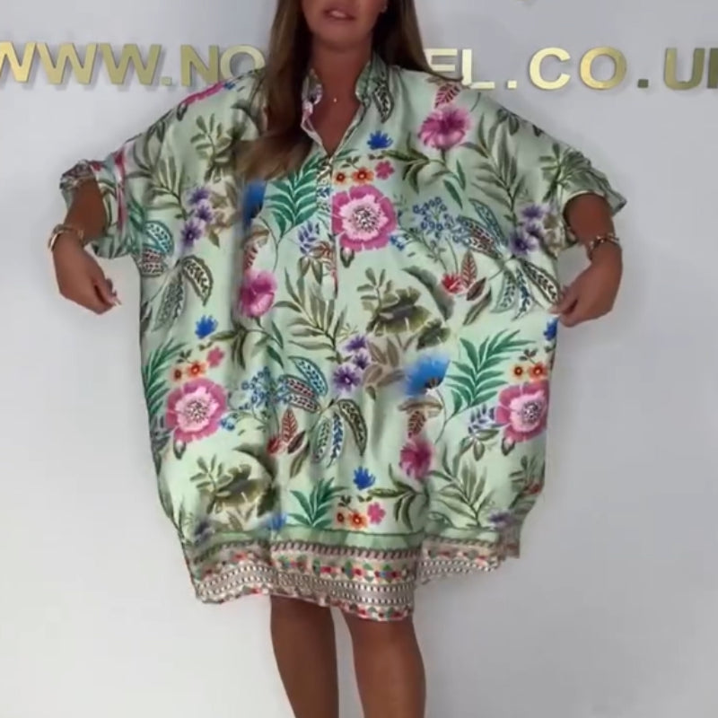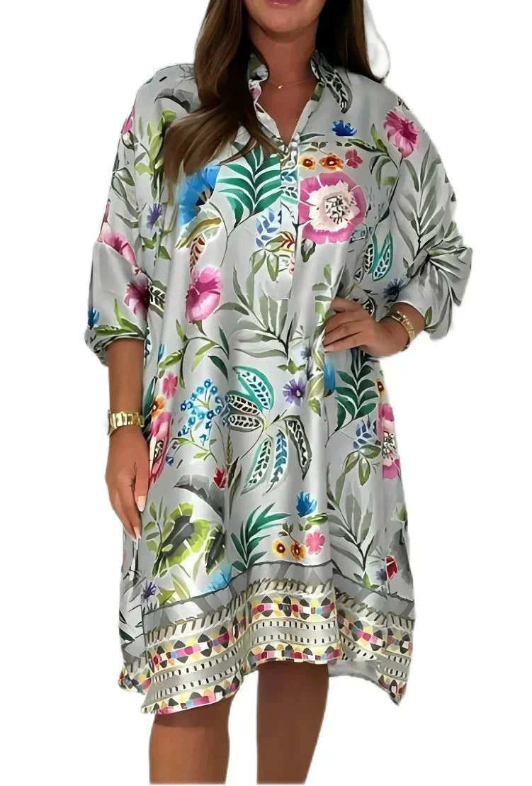 🌺Laisva gėlėta suknelė su V formos iškirpte ir sagomis užsegama-LT