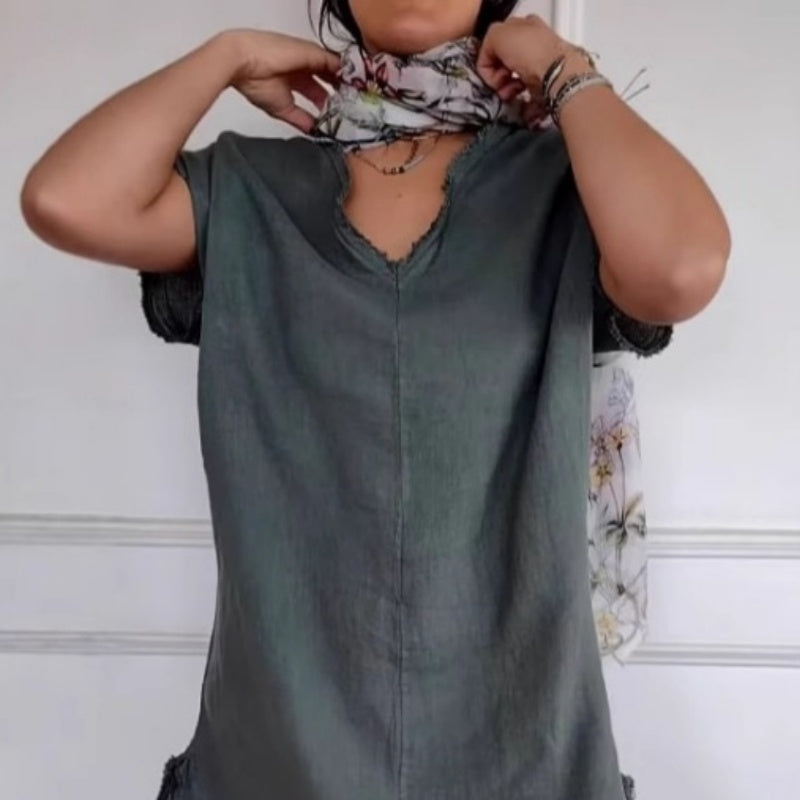 ✨Νέο ανοιξιάτικο✨ Βαμβακερό και λινό φόρεμα, casual, με λαιμόκοψη V και κρόσσια-GR